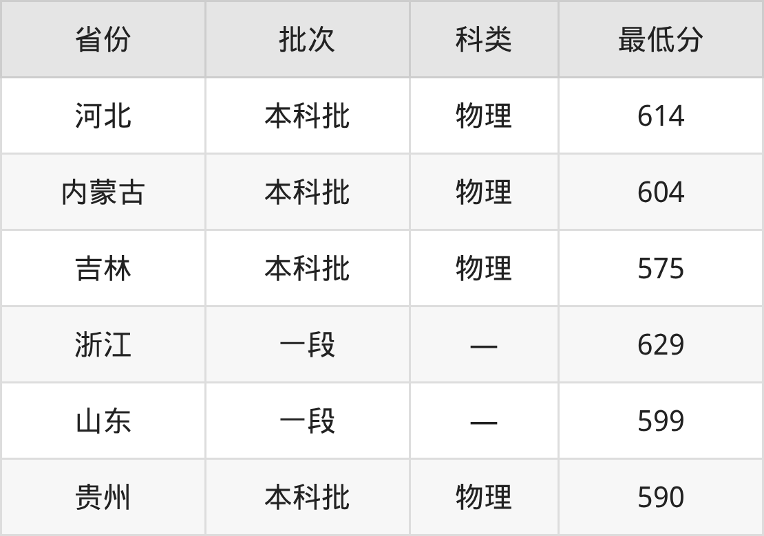 贵州大学电气工程及其自动化专业在全国各省最低录取分数线为575分(吉林物理类),除此之外,在其余地区的最低分为河北物理类614分、内蒙古物理类604分、浙江629分、山东599分等,以上数据均为2025年数据,供2026年高考生参考。