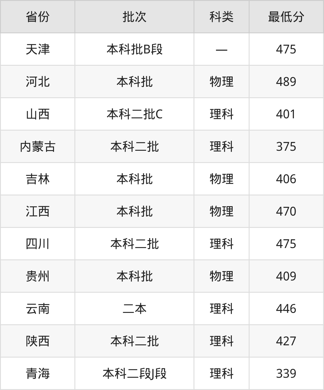 内蒙古:理科最低375分