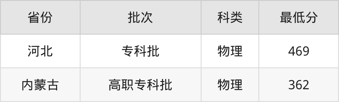 石家庄信息工程职业学院机电一体化技术专业录取分数线从362分到469分不等,最低分数线如下: