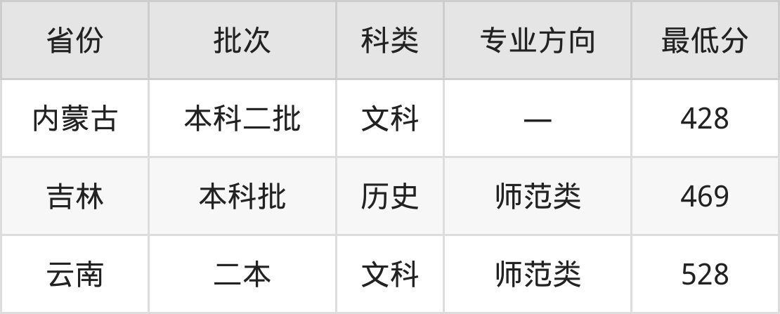 韩山师范学院小学教育专业在全国各省最低录取分数线为428分(内蒙古文科),除此之外,在其余地区的最低分为吉林历史类469分、云南文科528分,以上数据均为2024年数据,供2025年高考生参考。
