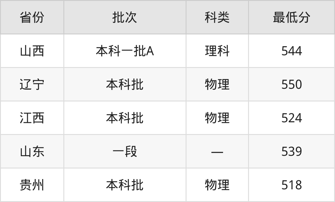山西:理科最低544分