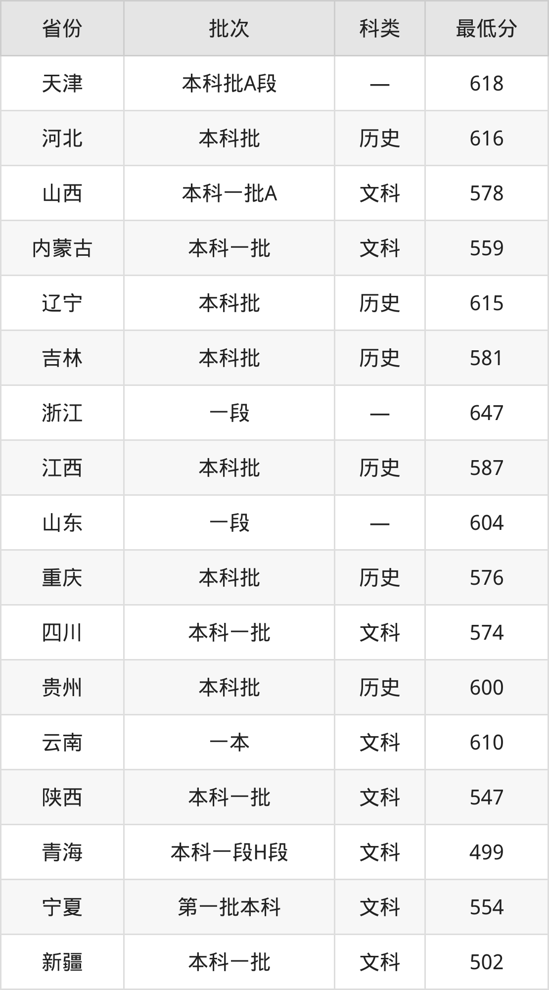华北电力大学(保定)法学专业录取分数线从499分到647分不等,在部分地区的最低分数线如下: