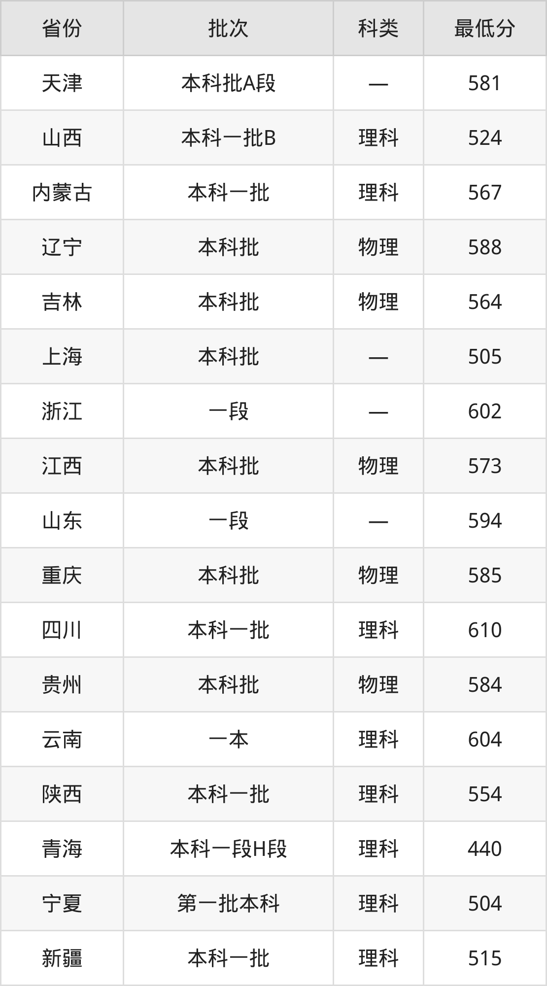 内蒙古:理科最低567分