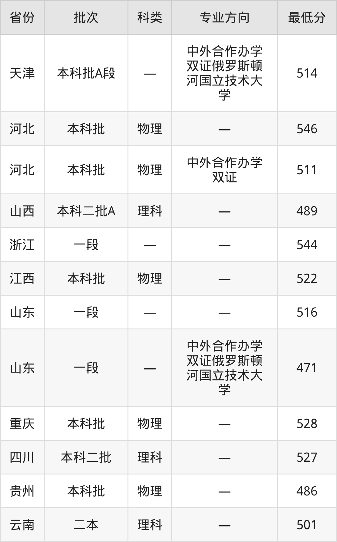 山东交通学院计算机科学与技术专业录取分数线从471分到546分不等,最低分数线如下: