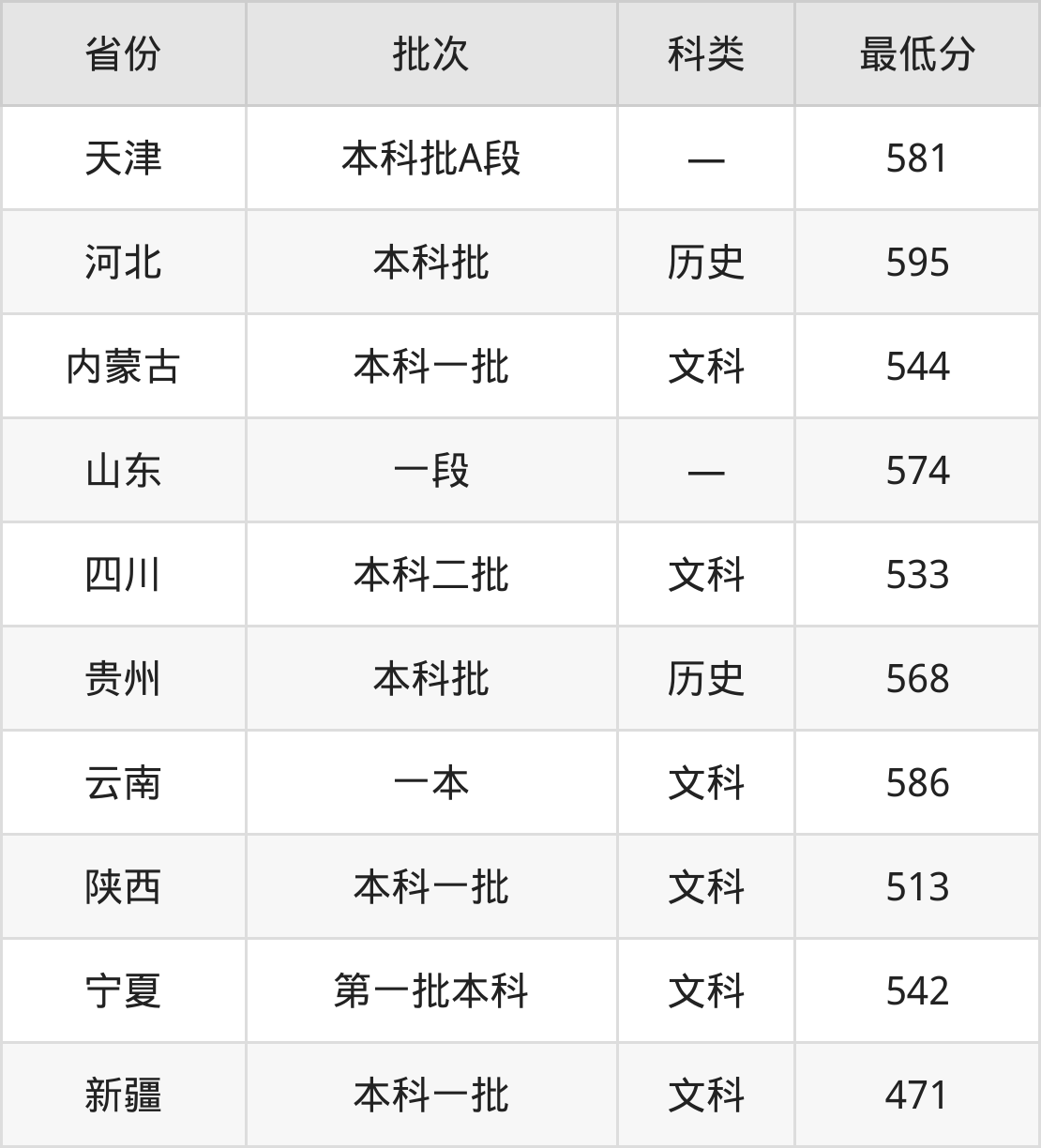 内蒙古:文科最低544分