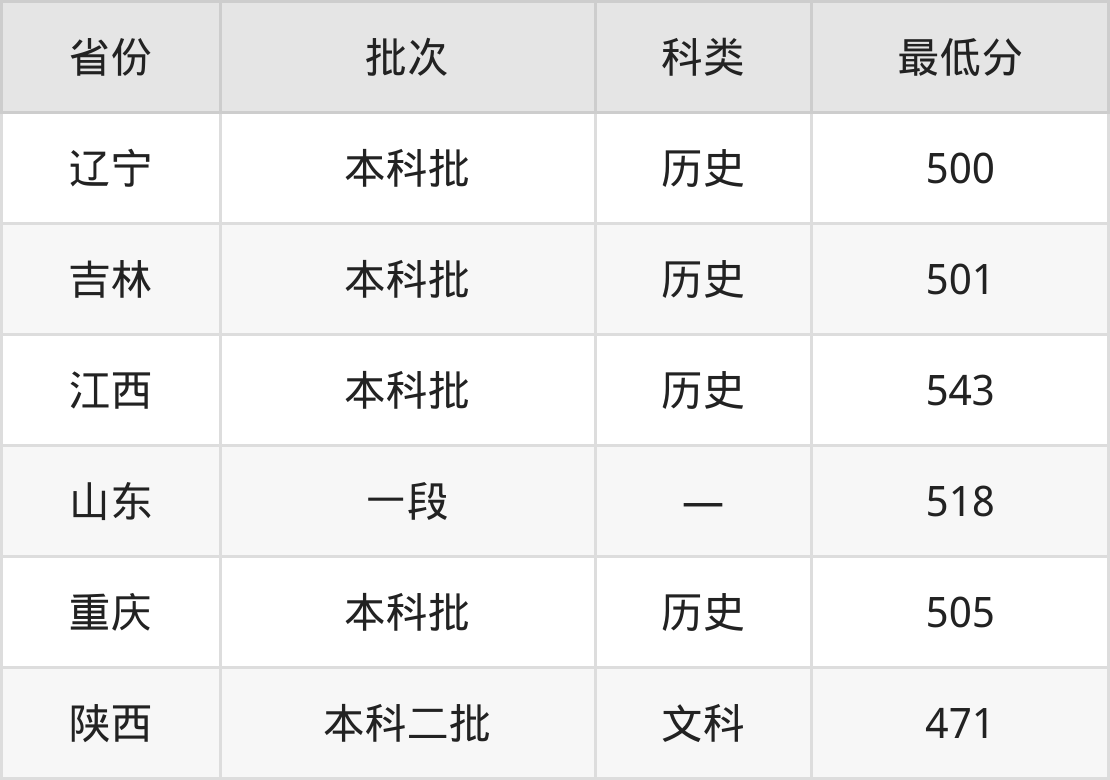 鲁东大学日语专业在全国各省最低录取分数线为471分(陕西文科),除此之外,在其余地区的最低分为辽宁历史类500分、吉林历史类501分、江西历史类543分、山东518分等,以上数据均为2024年数据,供2025年高考生参考。