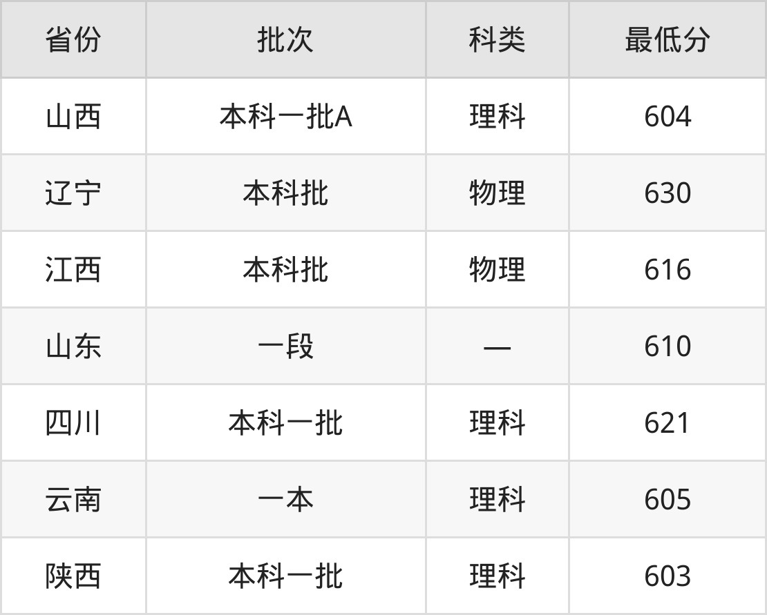 山西:理科最低604分