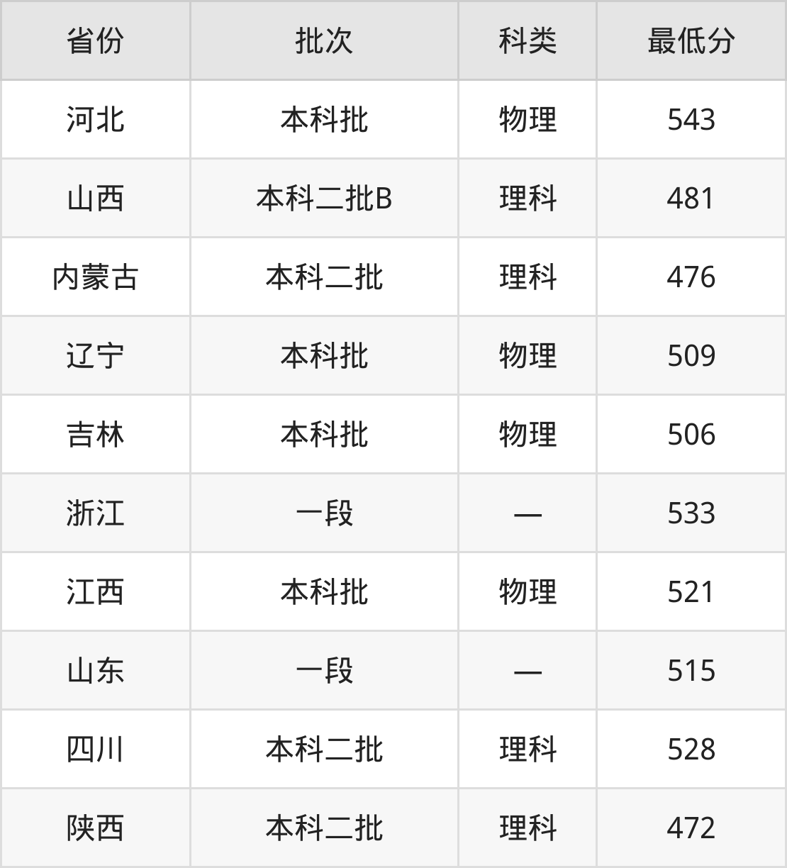 内蒙古:理科最低476分
