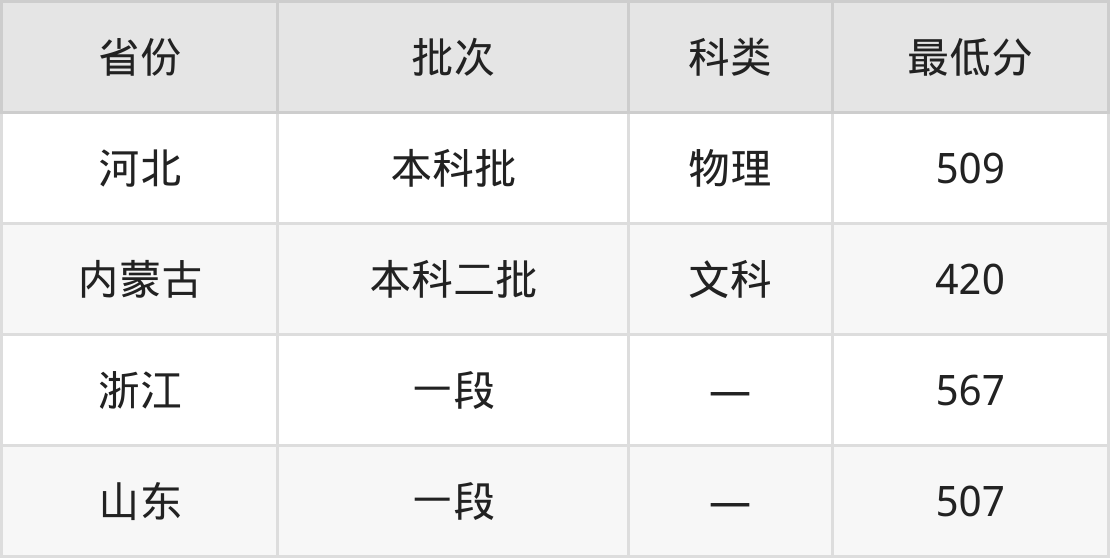 周口师范学院人力资源管理专业在全国各省最低录取分数线为420分(内蒙古文科),除此之外,在其余地区的最低分为山东507分、河北物理类509分、浙江567分,以上数据均为2024年数据,供2025年高考生参考。
