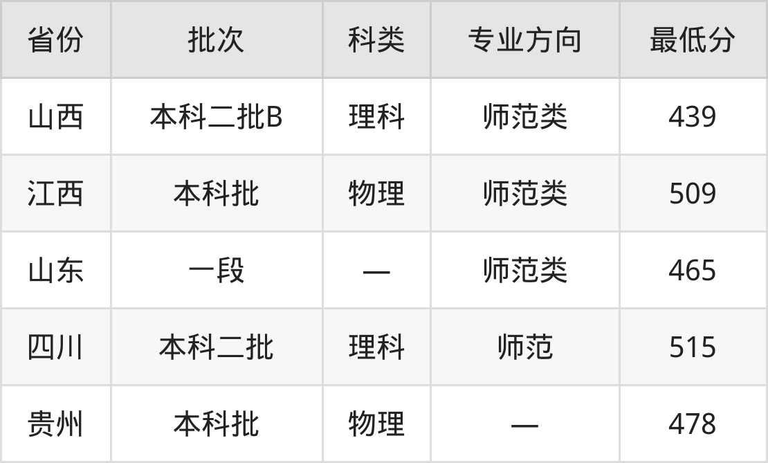 遵义师范学院生物科学专业录取分数线从439分到515分不等,最低分数线如下: