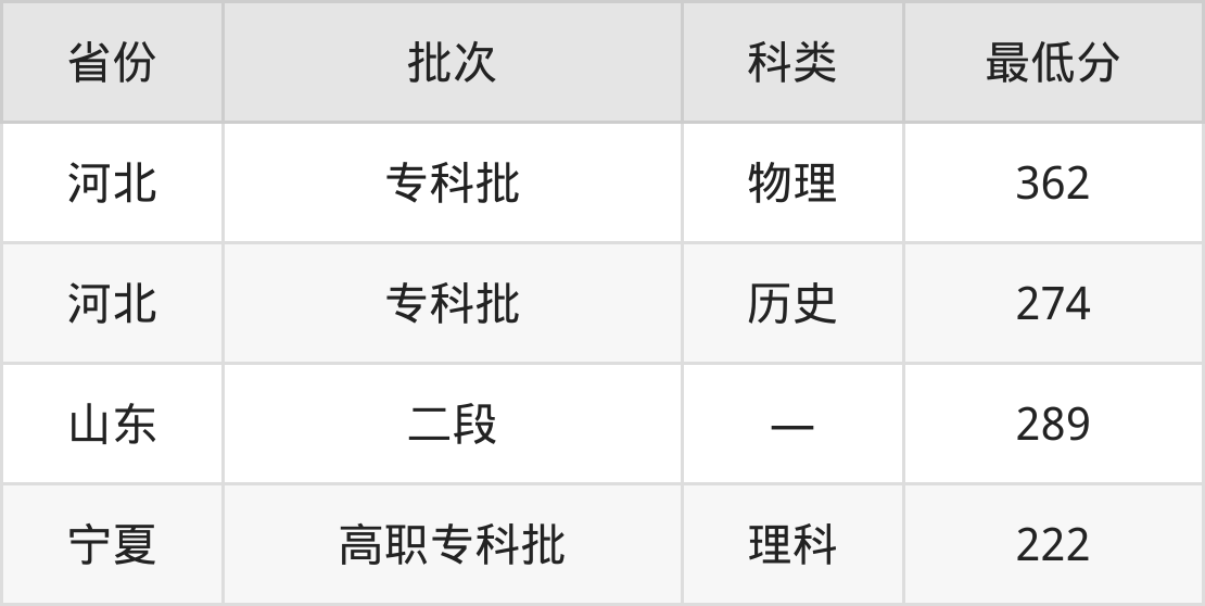 漳州科技职业学院护理专业录取分数线从222分到362分不等,最低分数线如下: