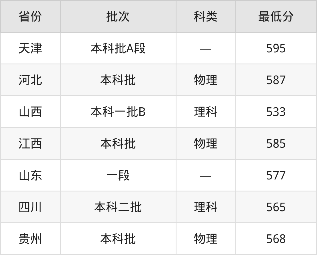 山西:理科最低533分