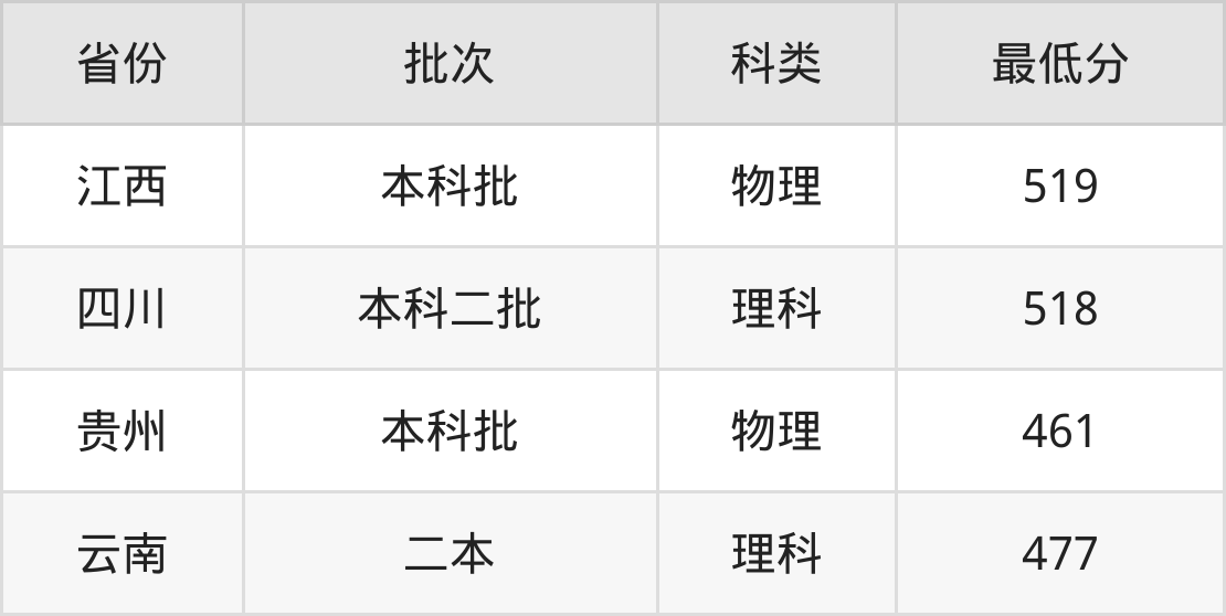 湖北第二师范学院生物制药专业在全国各省最低录取分数线为461分(贵州物理类),除此之外,在其余地区的最低分为江西物理类519分、四川理科518分、云南理科477分,以上数据均为2024年数据,供2025年高考生参考。
