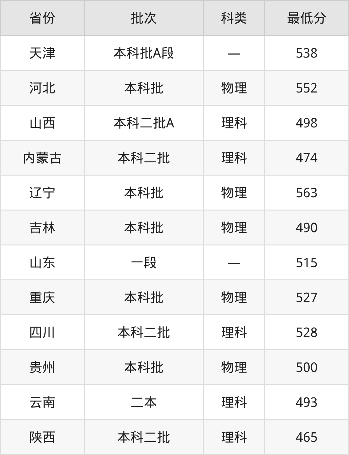 山东工商学院计算机科学与技术专业在全国各省最低录取分数线为465分(陕西理科),除此之外,在其余地区的最低分为天津538分、河北物理类552分、内蒙古理科474分、吉林物理类490分等,以上数据均为2024年数据,供2025年高考生参考。