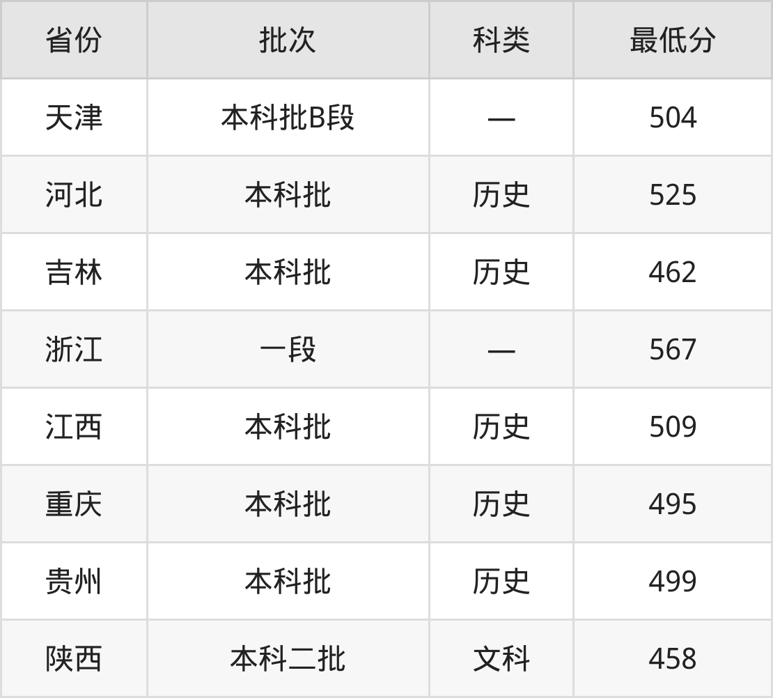 长沙理工大学城南学院法学专业在全国各省最低录取分数线为458分(陕西文科),除此之外,在其余地区的最低分为吉林历史类462分、浙江567分、江西历史类509分、重庆历史类495分等,以上数据均为2024年数据,供2025年高考生参考。