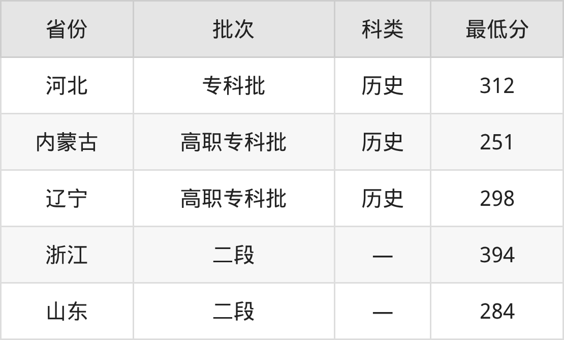 青岛恒星科技学院中医康复技术专业录取分数线从251分到394分不等,最低分数线如下: