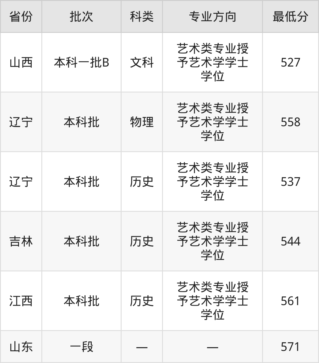 | 历史类 | 艺术类专业授 予艺术学学士 学位 | 53 |
