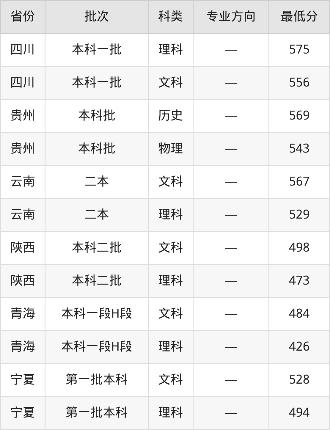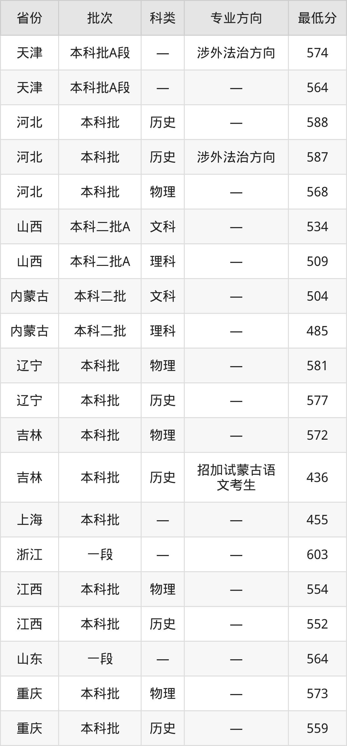 甘肃政法大学法学专业录取分数线从426分到603分不等,在部分地区的最低分数线如下: