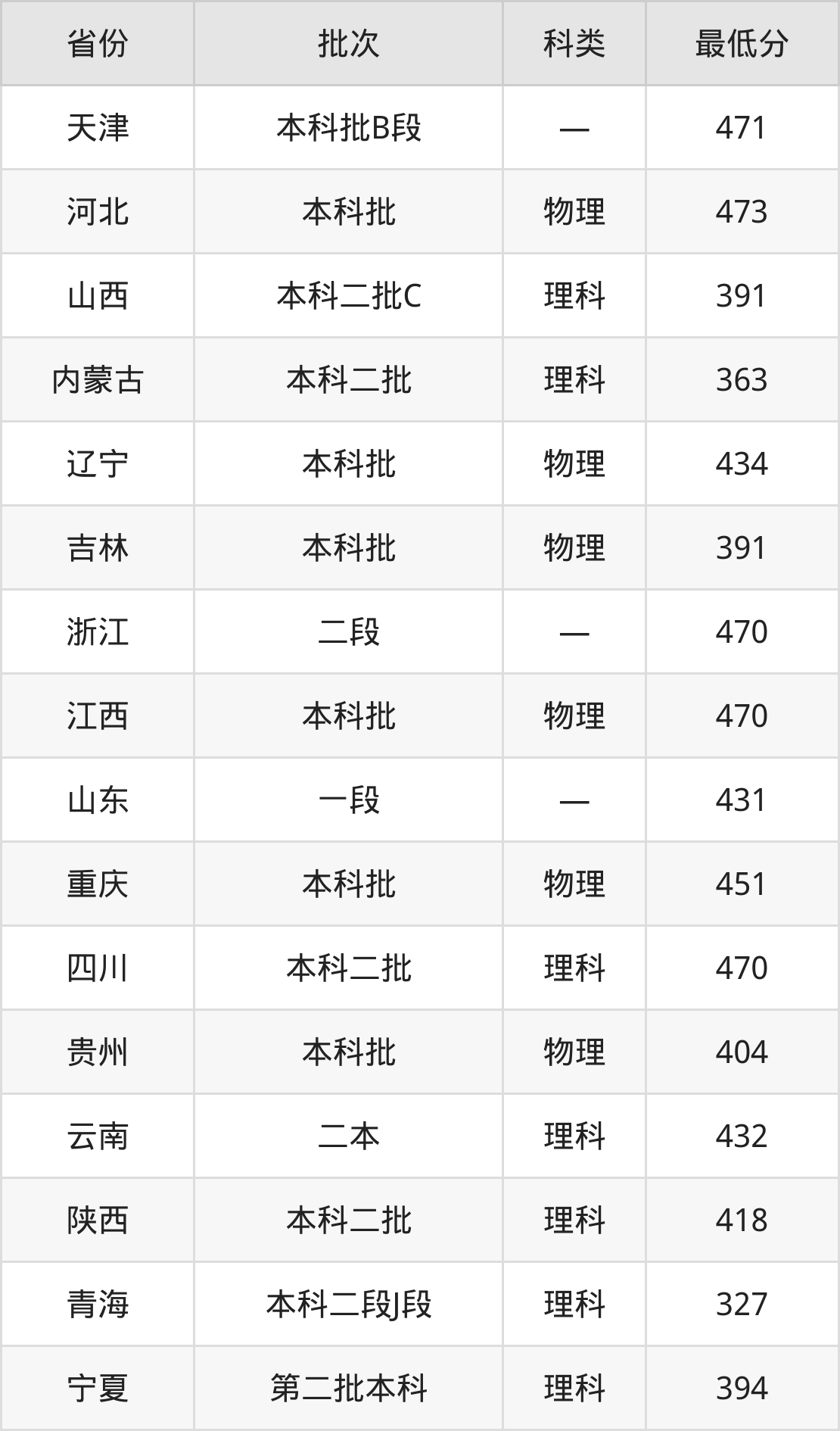 青岛城市学院机器人工程专业在全国各省最低录取分数线为327分(青海理科),除此之外,在其余地区的最低分为天津471分、浙江470分、云南理科432分、山西理科391分等,以上数据均为2024年数据,供2025年高考生参考。