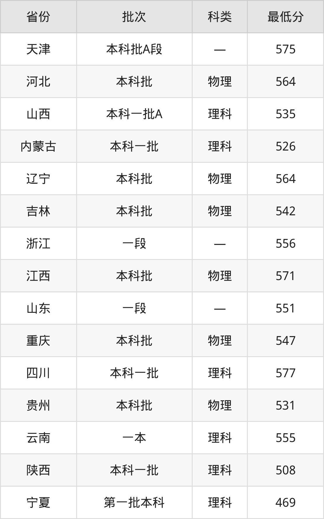 内蒙古:理科最低526分