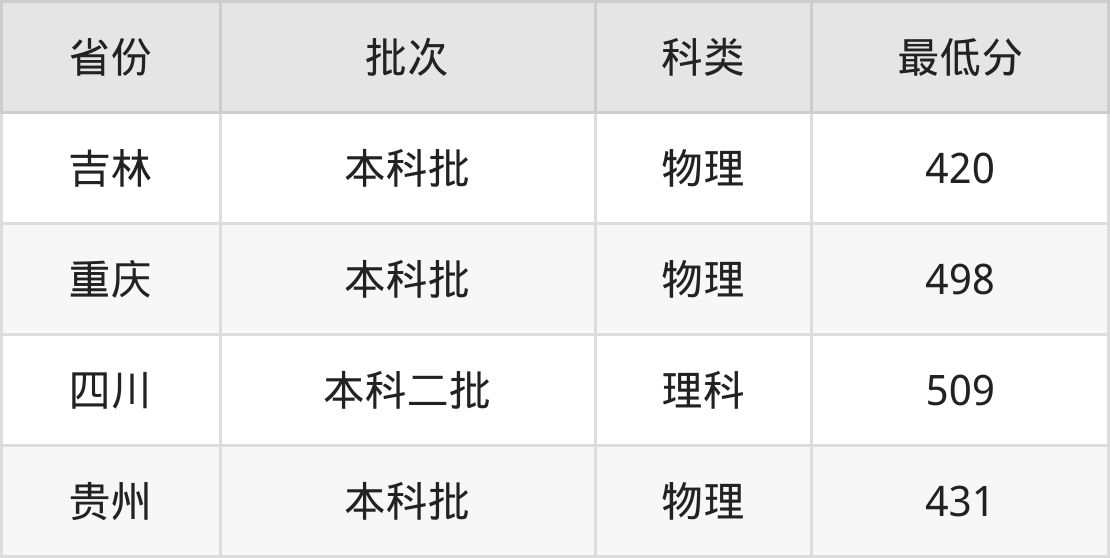 该选科要求对应地区:吉林、黑龙江、重庆、贵州