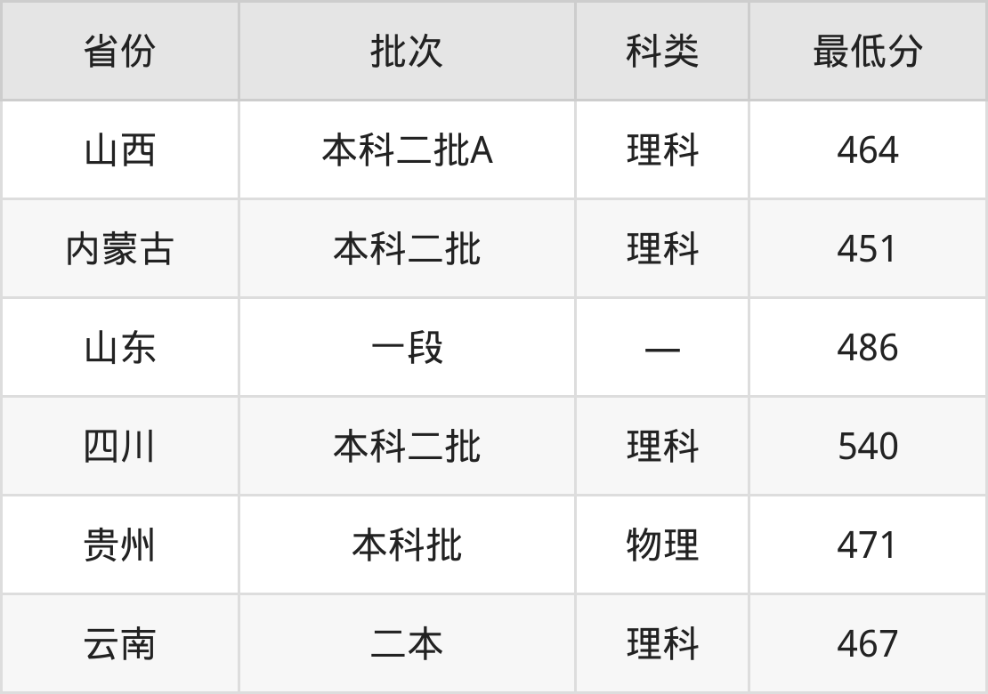 滨州医学院生物技术专业在全国各省最低录取分数线为451分(内蒙古理科),除此之外,在其余地区的最低分为山东486分、四川理科540分、贵州物理类471分、云南理科467分等,以上数据均为2024年数据,供2025年高考生参考。