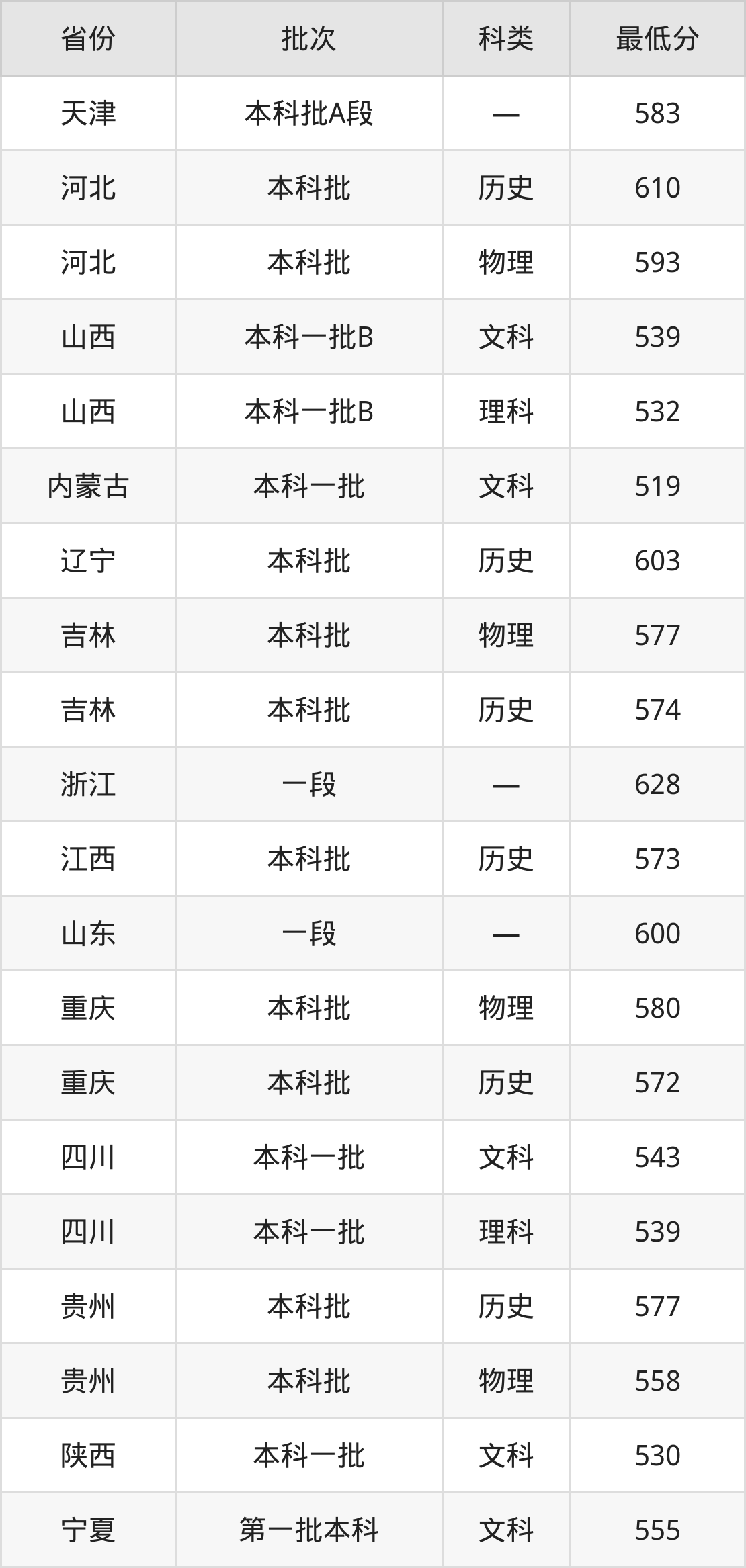 天津师范大学法学专业录取分数线从417分到628分不等,在部分地区的最低分数线如下:
