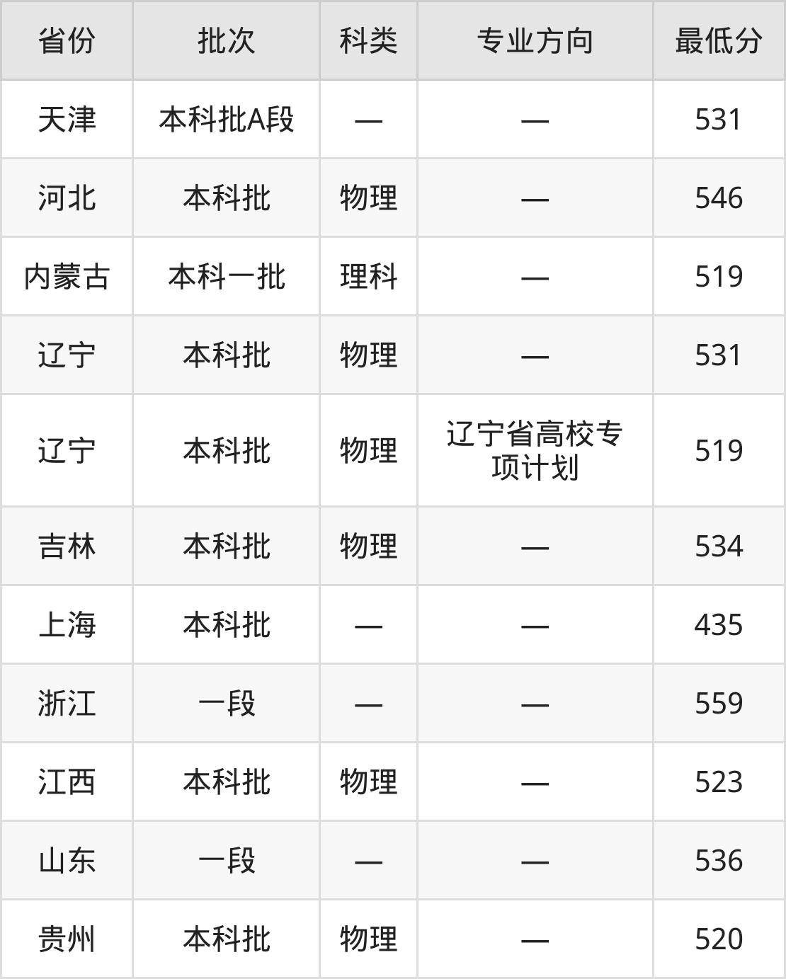 | 物理类 | 辽宁省高校专 项计划 | 10 |