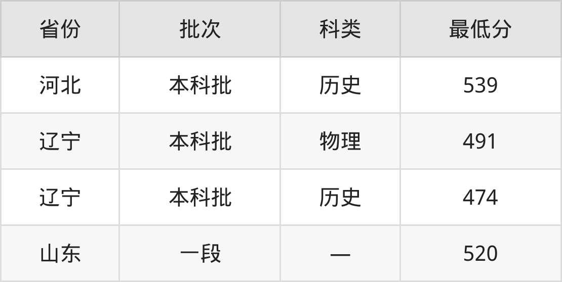 沈阳化工大学社会工作专业在全国各省录取分数线: