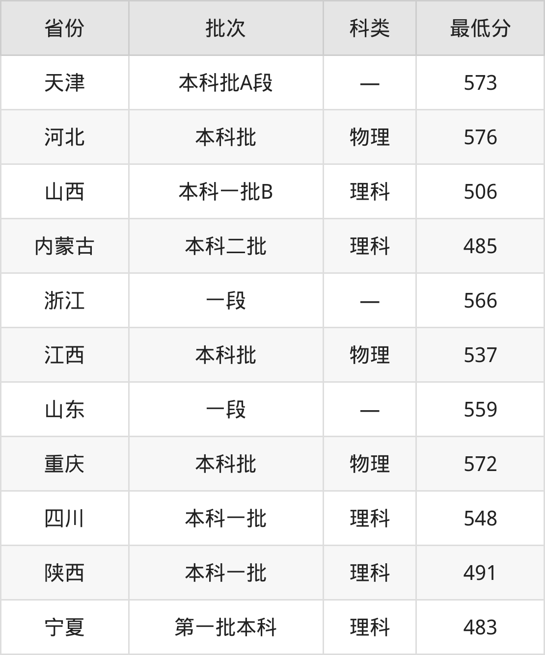 山西财经大学计算机科学与技术专业录取分数线从483分到576分不等,在部分地区的最低分数线如下: