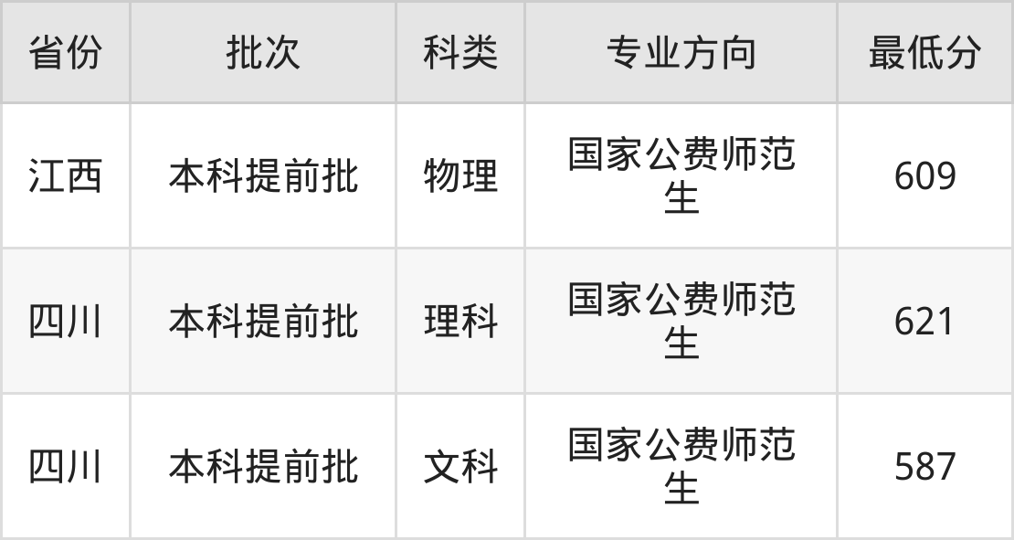 西南大学特殊教育专业录取分数线从587分到621分不等,最低分数线如下: