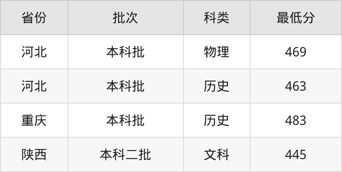 燕京理工学院应用心理学专业在全国各省最低录取分数线为445分(陕西文科),除此之外,在其余地区的最低分为河北历史类463分、重庆历史类483分,以上数据均为2024年数据,供2025年高考生参考。