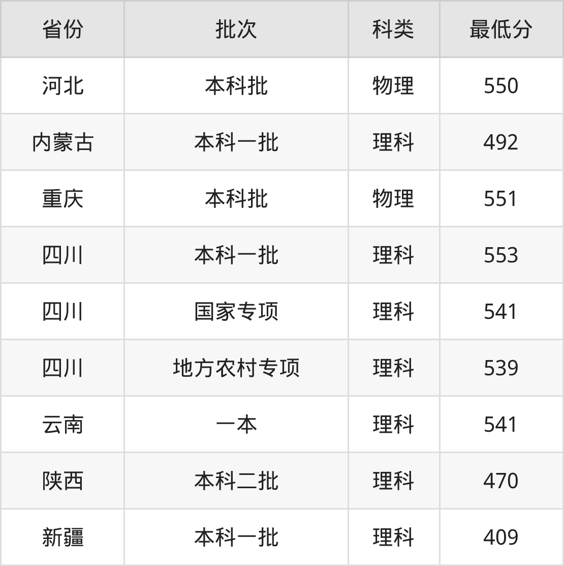 西南科技大学地理信息科学专业在全国各省最低录取分数线为409分(新疆理科),除此之外,在其余地区的最低分为重庆物理类551分、四川理科539分、云南理科541分、陕西理科470分等,以上数据均为2024年数据,供2025年高考生参考。