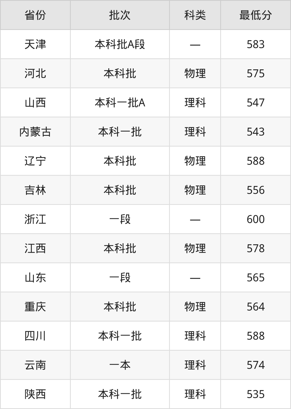 内蒙古:理科最低543分