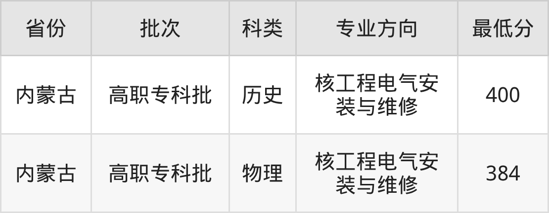 | 物理类 | 专业组101 | 核工程电气安 装与维修 | 73 |