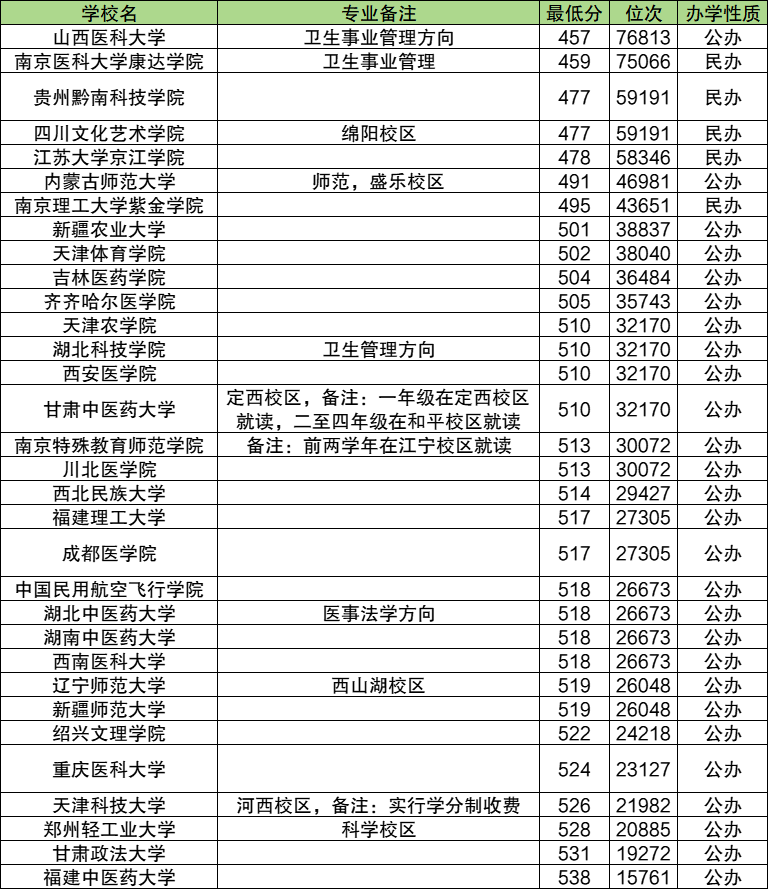 二本公共事业管理分数线排名前五的还有:537分的重庆医科大学、537分的温州医科大学、536分的福建中医药大学、531分的新疆医科大学。