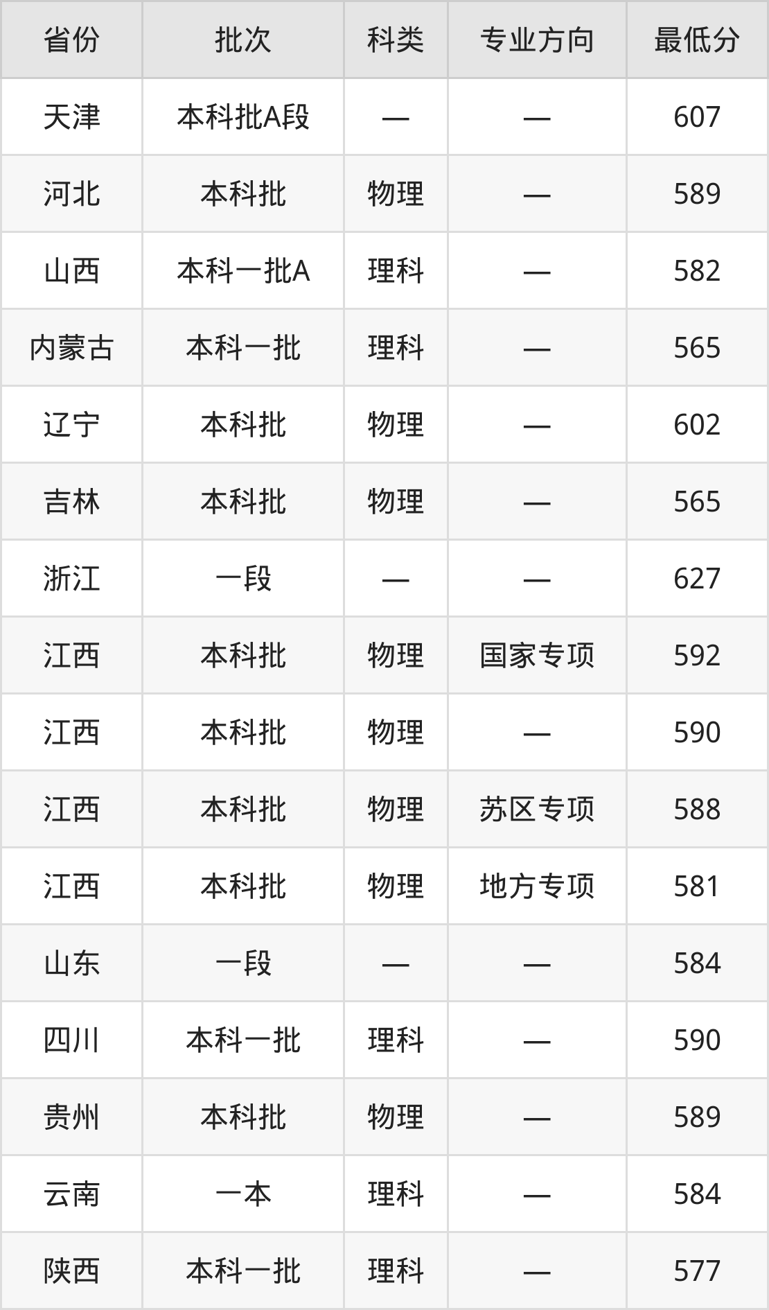 南昌大学食品科学与工程专业录取分数线从565分到627分不等,在部分地区的最低分数线如下: