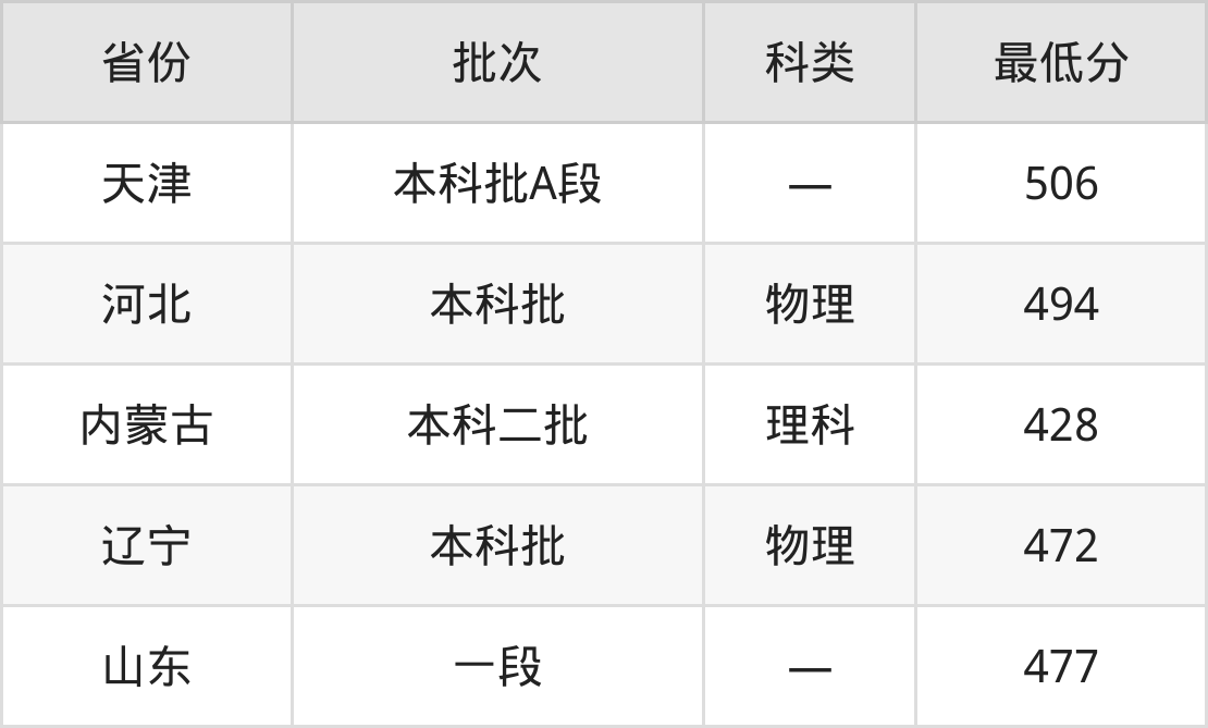 衡水学院机械电子工程专业在全国各省最低录取分数线为428分(内蒙古理科),除此之外,在其余地区的最低分为天津506分、河北物理类494分、辽宁物理类472分、山东477分,以上数据均为2024年数据,供2025年高考生参考。