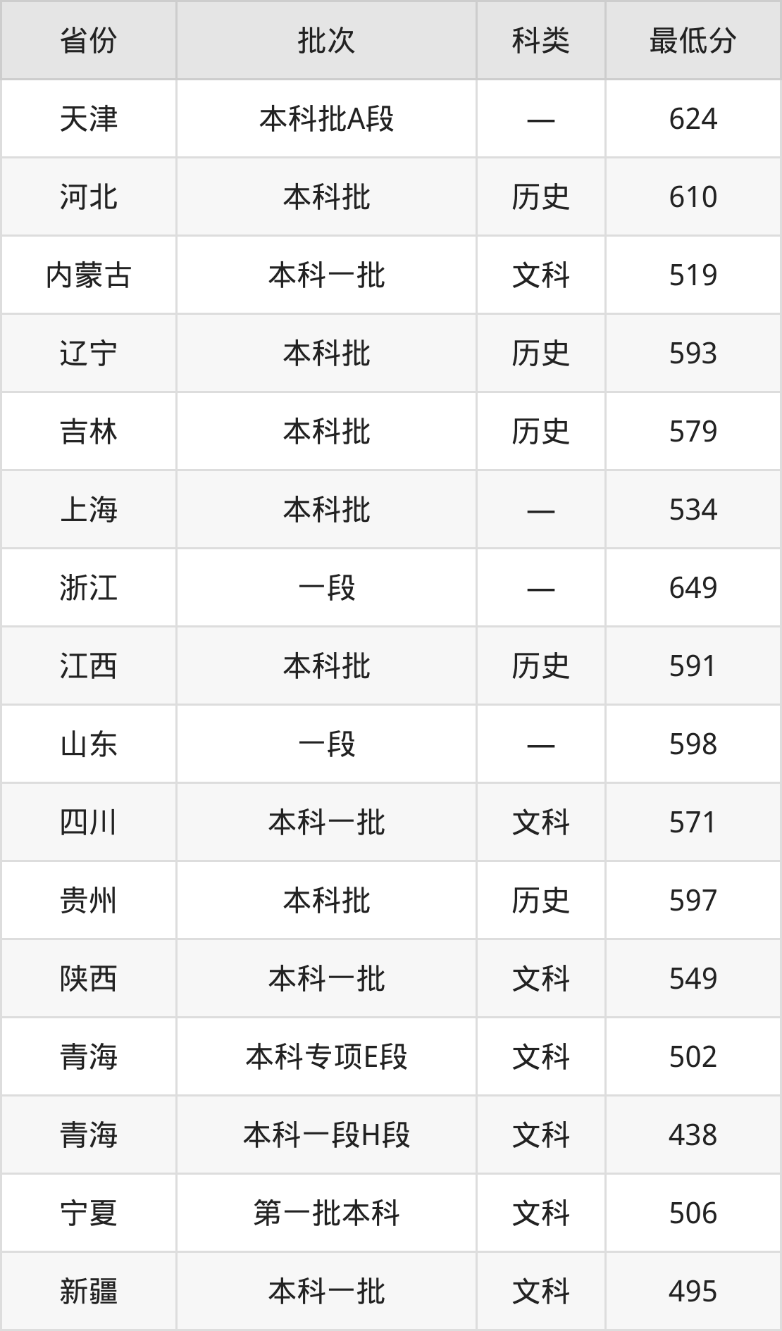 河海大学英语专业录取分数线从438分到649分不等,在部分地区的最低分数线如下: