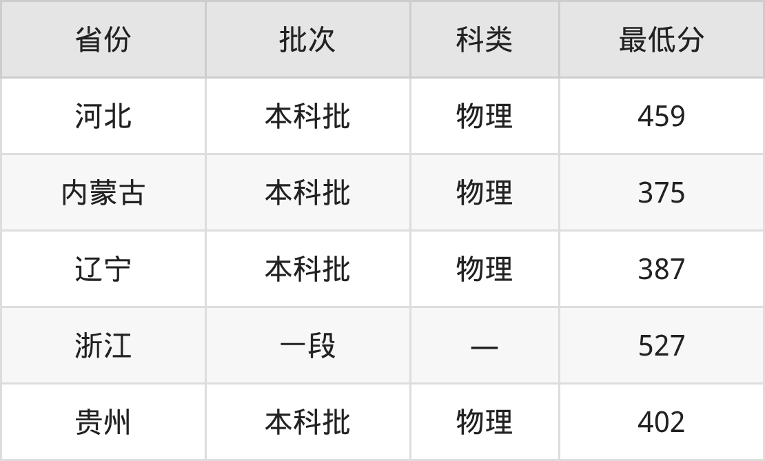 沈阳工学院园林专业录取分数线从375分到527分不等,最低分数线如下: