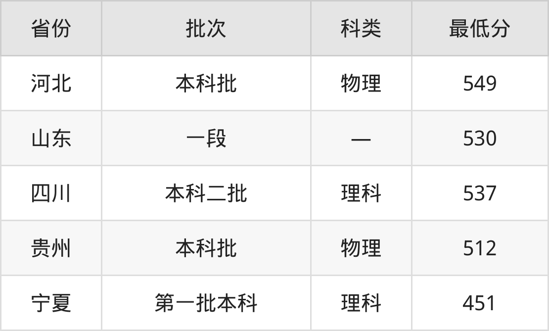 安徽农业大学农业机械化及其自动化专业录取分数线从451分到549分不等,最低分数线如下: