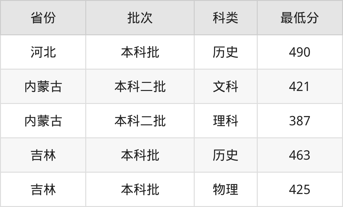 吉林体育学院社会工作专业录取分数线从387分到490分不等,最低分数线如下: