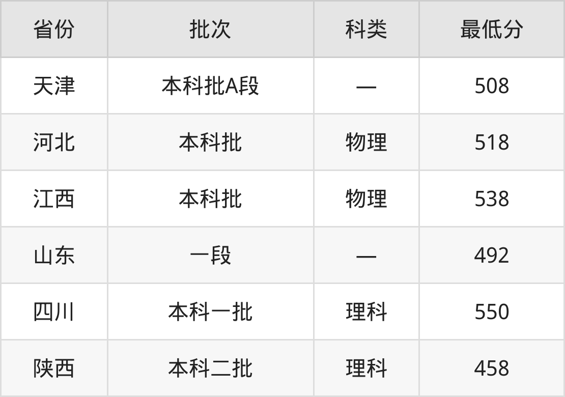 安徽建筑大学环境工程专业在全国各省最低录取分数线为458分(陕西理科),除此之外,在其余地区的最低分为天津508分、河北物理类518分、江西物理类538分、山东492分等,以上数据均为2024年数据,供2025年高考生参考。