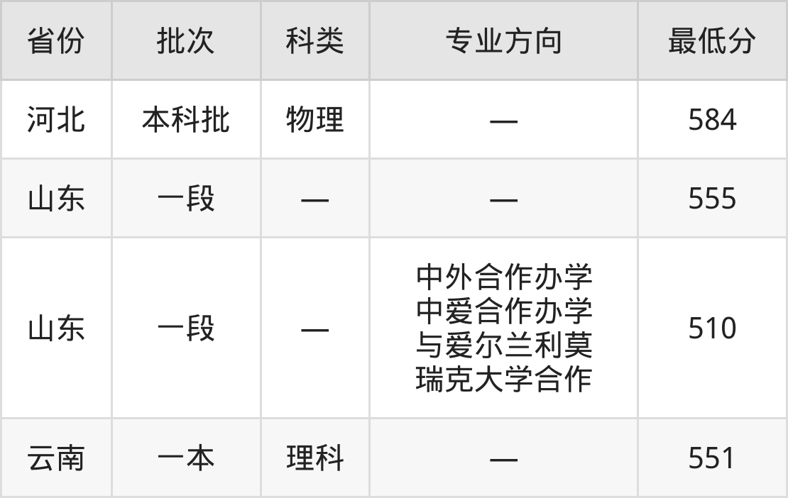 山东理工大学计算机科学与技术专业录取分数线从510分到584分不等,最低分数线如下: