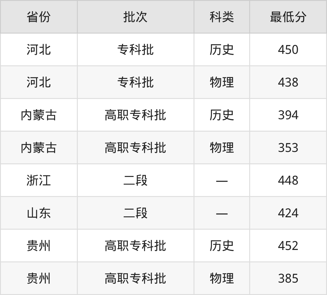 湖北交通职业技术学院道路与桥梁工程技术专业录取分数线从353分到452分不等,最低分数线如下: