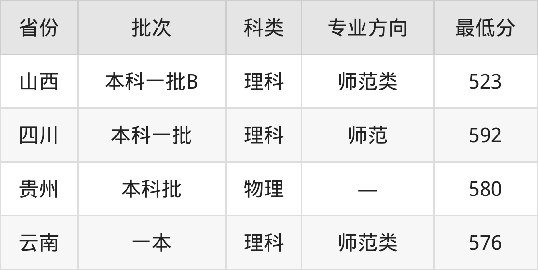 福建师范大学数学与应用数学专业在全国各省最低录取分数线为523分(山西理科),除此之外,在其余地区的最低分为四川理科592分、贵州物理类580分、云南理科576分,以上数据均为2024年数据,供2025年高考生参考。