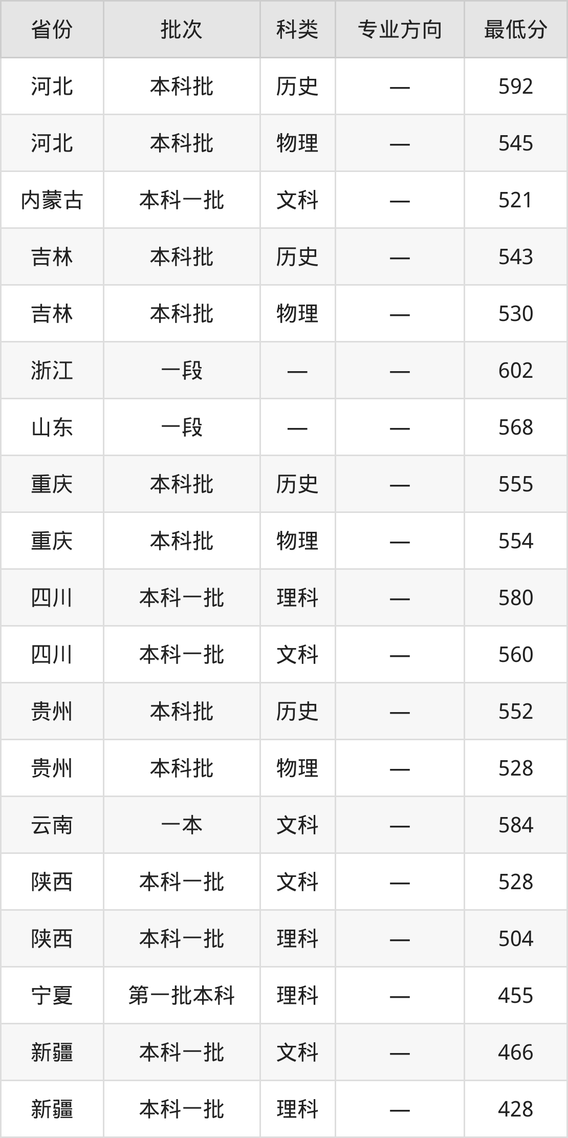 新疆大学新闻传播学类专业录取分数线从428分到602分不等,在部分地区的最低分数线如下: