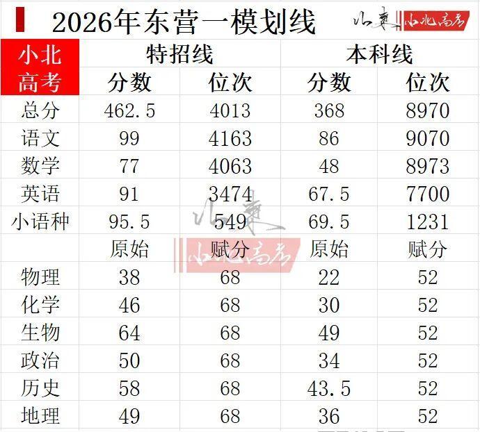 6.2026年东营一模分数线