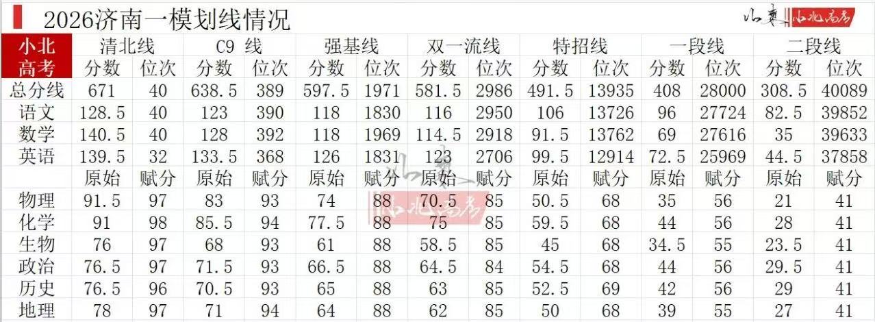 1.2026年济南一模分数线