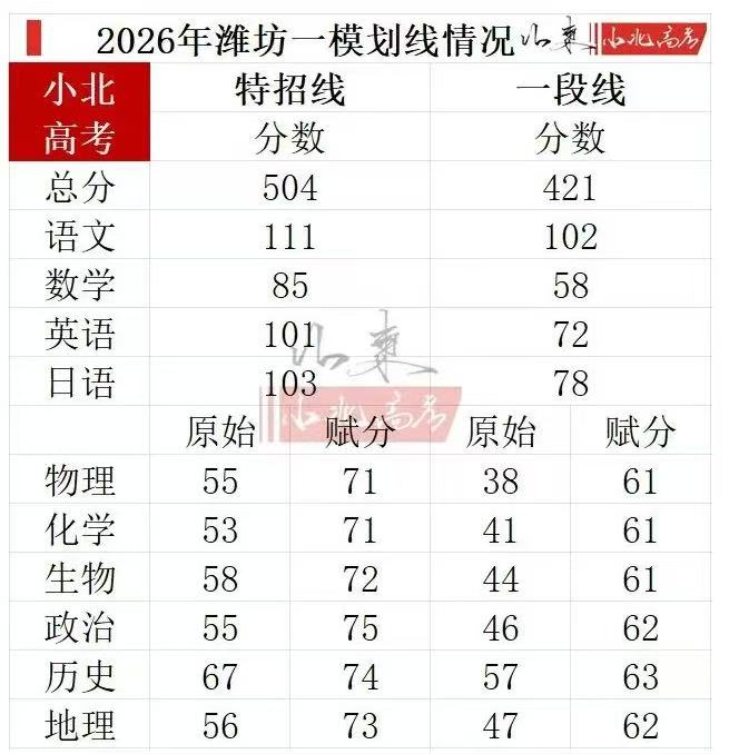 3.2026年潍坊一模分数线